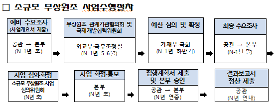 ¼Ò±Ô¸ð ¹«»ó¿øÁ¶ »ç¾÷À̶õ ¿øÁ¶¼Ò¿Ü ¿ÏÈ ¹× ¿Ü±³Àû ¸ñÀû ´Þ¼ºÀ» À§ÇØ ¼ö¿ø±¹ÀÇ ¼ö¿ä¿¡ µû¶ó ÇÊ¿ä ¹°ÀÚ¸¦ Áö¿øÇÏ´Â »ç¾÷À¸·Î ¿Ü±³Àü·« ¼öÇàÀ» À§ÇØ È°¿ëµÈ´Ù. Àç¿Ü°ø°ü¿¡¼ Çʿ信 µû¶ó »ç¾÷À» ½ÅûÇϸé, ¿Ü±³ºÎ°¡ ½ÉÀÇ¡¤È®Á¤ÇÑ ÈÄ ODA(°øÀû°³¹ß¿øÁ¶) ¼öÇà±â°üÀÎ KOICA¿¡¼ ¿¹»êÀ» ÁýÇàÇÑ´Ù.