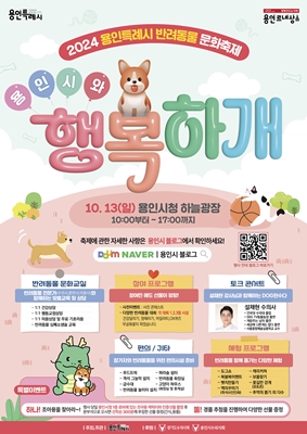 ÀÚ¼¼ÇÑ ³»¿ëÀº ¡®2024 ¿ëÀÎ½Ã¿Í ÇູÇϰ³¡¯ ºí·Î±×(https://blog.naver.com/yonginpet) ¿¡¼ È®ÀÎÇÒ ¼ö ÀÖ°í, »çÀü À̺¥Æ®ÀÎ ¡®¹Ý·Áµ¿¹° ÀÌ»ö »çÁø ÄÜÅ×½ºÆ®¡¯ Á¢¼öµµ ÇØ´ç ºí·Î±×¿¡¼ ÇÒ ¼ö ÀÖ´Ù.