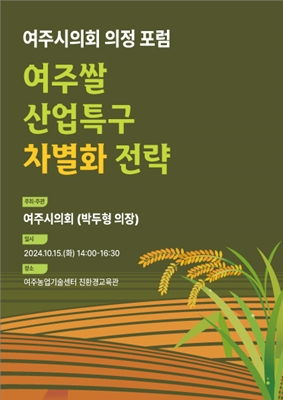 ¿©ÁÖ½ÃÀÇȸ(ÀÇÀå: ¹ÚµÎÇü)´Â ¿À´Â 10¿ù 15ÀÏ È¿äÀÏ ¿ÀÈÄ 2½Ã, ¿©ÁÖ³ó¾÷±â¼ú¼¾ÅÍ Ä£È¯°æ±³À°°ü¿¡¼ ¡°¿©ÁÖ½Ò »ê¾÷Ư±¸ Â÷º°È Àü·«¡±À» ÁÖÁ¦·Î Á¦12ȸ ÀÇÁ¤Æ÷·³À» °³ÃÖÇÑ´Ù.