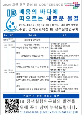 À̹ø ÄÜÆÛ·±½º´Â ¡®IB! ¹è¿òÀÇ ¹Ù´Ù¿¡ ¶°¿À¸£´Â »õ·Î¿î ¹°°á¡¯À» ÁÖÁ¦·Î ±³»çµéÀÌ IB ±³À° öÇÐÀ» ¼ö¾÷¿¡ Àû¿ëÇÑ ¿¬±¸ °á°ú¸¦ ¹ßÇ¥ÇÑ´Ù. IB Á¤Ã¥½ÇÇ࿬±¸È¸ ÁÖ°üÀ¸·Î ÁøÇàµÇ¸ç µµ³» ±³»ç 130¸íÀÌ Âü¼®ÇÑ´Ù.