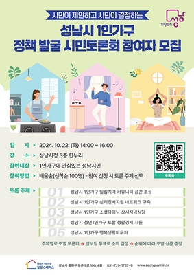 ¼º³²½Ã(½ÃÀå ½Å»óÁø)´Â ¿À´Â 10¿ù 22ÀÏ ¿ÀÈÄ 2½Ã~4½Ã ½Ãû 3Ãþ ÇÑ´©¸®¿¡¼ ¡®1Àΰ¡±¸ Á¤Ã¥ ¹ß±¼À» À§ÇÑ ½Ã¹ÎÅä·Ðȸ¡¯¸¦ °³ÃÖÇÑ´Ù.