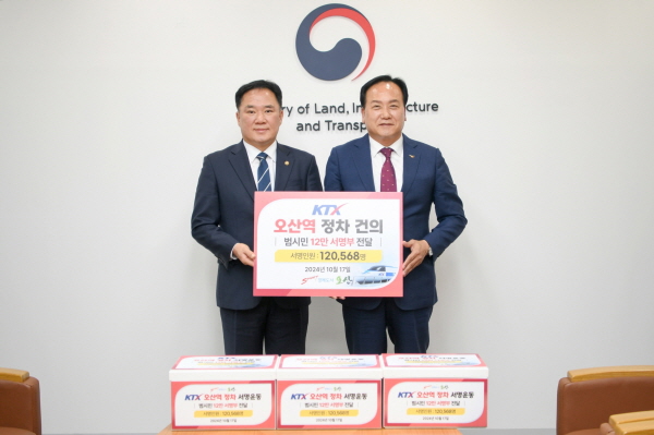 À̱ÇÀç ¿À»ê½ÃÀå, ±¹ÅäºÎ Á¦2Â÷°ü ¸¸³ª KTX¿À»ê¿ª Á¤Â÷ °ÇÀǼ­, 12¸¸ ¼­¸íºÎ Àü´Þ