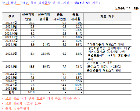 ±èÇöÁ¤ ÀÇ¿ø(°æ±â ÆòÅýú´)ÀÌ ±ÝÀ¶À§¿øÈ¸¿Í ¼¹Î±ÝÀ¶ÁøÈï¿øÀ¸·ÎºÎÅÍ Á¦Ãâ¹ÞÀº ÀÚ·á¿¡ µû¸£¸é, û³âµµ¾à°èÁ °¡ÀÔÀÚ´Â ¿ÃÇØ 8¿ù ÇöÀç 143¸¸ 8õ ¸í¿¡ ´ÞÇß´Ù. ÀÌ Áß 16¸¸ 1õ ¸íÀÌ Áßµµ¿¡ ÇØÁöÇØ Áßµµ ÇØÁöÀ²ÀÌ 11.2%¿¡ ´ÞÇÏ´Â °ÍÀ¸·Î ³ªÅ¸³µ´Ù.