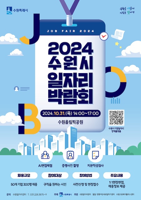 ¼ö¿ø½Ã(½ÃÀå ÀÌÀçÁØ)°¡ 10¿ù 31ÀÏ ¿ÀÈÄ 2~5½Ã ¼ö¿ø ¿Ã¸²ÇȰø¿ø¿¡¼­ ¡®2024 ¼ö¿ø½Ã ÀÏÀÚ¸®¹Ú¶÷ȸ¡¯¸¦ °³ÃÖÇÑ´Ù.