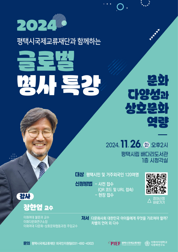 À̹ø °¿¬Àº ´Ù¹®È »çȸ-»óÈ£¹®ÈÁÖÀÇ ºÐ¾ß Àü¹®°¡ÀÎ ÀåÇѾ÷ ÀÌÈ¿©´ë ±³¼ö¸¦ ÃʺùÇØ ´Ù¹®È »çȸ°¡ ¿ä±¸ÇÏ´Â Çö½ÇÀ» ÁöÀûÇÏ°í ´Ù¹®È ȯ°æÀÇ ¹Ì·¡ »çȸ¸¦ À§ÇÑ ´ë¾ÈÀ» ÇÔ²² ¾Ë¾Æº¼ ¿¹Á¤ÀÌ´Ù.