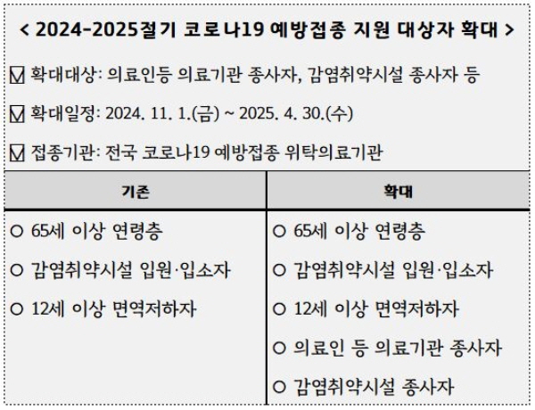 ´ë»óÀÚ´Â ½ÅºÐÁõ, ÀçÁ÷Áõ¸í¼ µî Á¾»çÀÚÀÓÀ» È®ÀÎÇÒ ¼ö ÀÖ´Â ¼·ù¸¦ ÁöÂüÇØ Äڷγª19 ¿¹¹æ Á¢Á¾ ÁöÁ¤ ÀÇ·á±â°ü¿¡ ¹æ¹®ÇÏ¸é ¹«·á Á¢Á¾ÀÌ °¡´ÉÇϸç, ÁöÁ¤ ÀÇ·á±â°üÀº ¿¹¹æÁ¢Á¾µµ¿ì¹Ì ´©¸®Áý¿¡¼ È®ÀÎÇÒ ¼ö ÀÖ´Ù.