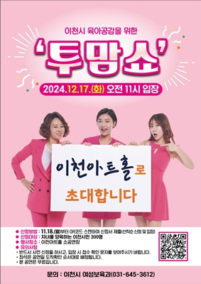 ÀÌõ½Ã(½ÃÀå ±è°æÈñ)´Â ¿À´Â 12¿ù 17ÀÏ(È­) ¿ÀÀü 11½Ã, ÀÌõ¾ÆÆ®È¦ ¼Ò°ø¿¬Àå¿¡¼­ ¾çÀ°Àڵ鿡°Ô °ø°¨°ú ¿ôÀ½À» ¼±»çÇÒ "Åõ¸¾¼î" °ø¿¬À» °³ÃÖÇÑ´Ù.
