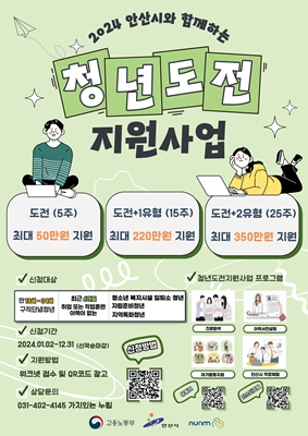 ÇÑÆí û³âµµÀüÁö¿ø»ç¾÷Àº ÃÖ±Ù 6°³¿ù ÀÌ»ó Ãë¾÷À̳ª ±³À°¡¤Á÷¾÷ÈÆ·Ã Âü¿© ÀÌ·ÂÀÌ ¾ø´Â 18~34¼¼ û³âµéÀÇ ±¸Á÷Ȱµ¿À» µ½´Â »ç¾÷ÀÌ´Ù. ÇöÀç ¡ãµµÀü(5ÁÖ, Âü¿©¼ö´ç 50¸¸ ¿ø Áö¿ø) ¡ãµµÀü+¥°(15ÁÖ, Âü¿©¼ö´ç 150¸¸ ¿ø+Àμ¾Æ¼ºê ÃÖ´ë 70¸¸ ¿ø) ¡ãµµÀü+¥±(25ÁÖ, Âü¿©¼ö´ç 250¸¸ ¿ø+Àμ¾Æ¼ºê ÃÖ´ë 100¸¸ ¿ø) 3°³ À¯ÇüÀ» ¿î¿µ ÁßÀ̸ç, ³»³âµµ »ç¾÷¿¡ Âü¿©¸¦ Èñ¸ÁÇϴ û³âÀº (»ç)°¡Ä¡Àִ´©¸²(031-402-4145)À¸·Î ¹®ÀÇÇÏ¸é ¾È³»¹ÞÀ» ¼ö ÀÖ´Ù.