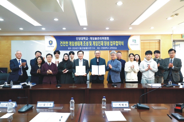 ¾È¾ç´ë ±³¹«È¸Àǽǿ¡¼­ 25ÀÏ ¿­¸° ¡®°ÇÀüÇÑ °ÔÀÓ»ýŰè Á¶¼º ¹× °ÔÀÓÀÎÀç ¾ç¼ºÀ» À§ÇÑ ¾÷¹«Çù¾à½Ä¡¯¿¡´Â ¾È¾ç´ë À層¼ö ÃÑÀå°ú °ÔÀÓ¹°°ü¸®À§¿øÈ¸ ¼­Å塂 À§¿øÀå, ¾È¾ç´ë Àå¿ëö ´ë¿ÜÇù·ÂºÎÃÑÀå, ÀÌÅÂ±Ô ±³ÇкÎÃÑÀå, ¾çÀç¼ö »êÇкÎÃÑÀå, ¹Ú³²ÈÆ ±âȹóÀå, ¼º¼Ò¿µ ÀÔÇÐóÀå, À̽ÂÈÆ °ÔÀÓÄÜÅÙÃ÷Çаú ÇаúÀå, °ÔÀÓ¹°°ü¸®À§¿øÈ¸ ±è¹ü¼ö ÀÚÀ²Áö¿øº»ºÎÀå, ±è¿ëÂù ¿Â¶óÀδëÀÀÆÀÀå, ½Åº¸¶÷¡¤À±¼ö¼® ¿Â¶óÀδëÀÀÆÀ ´ã´ç, ¾È¾ç´ë °ÔÀÓÄÜÅÙÃ÷Çаú û³â¼­Æ÷ÅÍÁî Çлý 5¸í µîÀÌ Âü¼®ÇÑ °¡¿îµ¥ µÎ ±â°üÀÇ Àû±ØÀûÀÎ »óÈ£Çù·Â ¹æ¾ÈÀÌ ³íÀǵǾú´Ù.