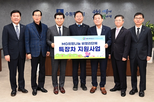 ÀÌÀçÁØ(¿À¸¥ÂÊ¿¡¼­ ¼¼ ¹øÂ°) ¼ö¿øÆ¯·Ê½ÃÀå°ú ±è½Â¿ø(¸ÇÁß¾Ó¡¤¹ÎÁÖ¡¤¼ö¿ø°©) ±¹È¸ÀÇ¿ø, À̰­¹«(¿ÞÂÊ¿¡¼­ ¼¼ ¹øÂ°) MG»õ¸¶À»±Ý°íÁß¾Óȸ °æ±âÁö¿ªÀÌ»ç, Á¤¿ìö(¿À¸¥ÂÊ¿¡¼­ µÎ ¹øÂ°) MG»õ¸¶À»±Ý°íÁß¾Óȸ °æ±âº»ºÎÀå, ⼺¼ö(¸Ç ¿À¸¥ÂÊ) MG»õ¸¶À»±Ý°íÁß¾Óȸ Áö¿ªÈñ¸Á³ª´®Àç´Ü »ç¹«±¹Àå, ¹ÚÃæ±Ô(¿ÞÂÊ¿¡¼­ µÎ ¹øÂ°) MG¼ö¿ø»õ¸¶À»±Ý°í ÀÌ»çÀå, ÀÌ»ó¼ö(¸Ç ¿ÞÂÊ) Àå¾È±¸Ã»Àå