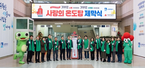 ¼ö¿ø½Ã(½ÃÀå ÀÌÀçÁØ)´Â 10ÀÏ ½Ãû º»°ü ·Îºñ¿¡¼­ ¡®»ç¶ûÀÇ ¿ÂµµÅ¾¡¯ Á¦¸·½ÄÀ» ¿­°í, ¡®Èñ¸Á 2025 ³ª´®Ä·ÆäÀΡ¯À» ½ÃÀÛÇß´Ù. 10¾ï ¿ø ¸ð±ÝÀ» ¸ñÇ¥·Î ³»³â 1¿ù 31ÀϱîÁö »ç¶ûÀÇ ¿ÂµµÅ¾À» ¿î¿µÇÑ´Ù.