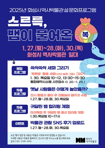 ȼº½Ã ¿ª»ç¹Ú¹°°ü¿¡¼ ¼³ ¿¬ÈÞ 27ÀϺÎÅÍ 30ÀϱîÁö ¼³³¯ ¹®ÈÇÁ·Î±×·¥¡®½º¸£¸¤, ¹ìÀÌ ¹°¾î¿Â º¹¡¯À» ¿î¿µÇÑ´Ù.