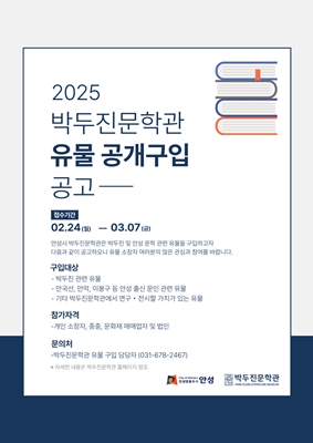 ¾È¼º½Ã ¹ÚµÎÁø¹®Çаü, 2025³âµµ À¯¹° °ø°³±¸ÀÔ ÃßÁø