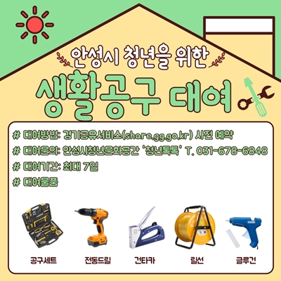 ¾È¼º½Ã »ýȰ±ÇÀ» µÐ 19¼¼~39¼¼ û³âÀ̶ó¸é '°æ±â°øÀ¯¼ºñ½º' ȨÆäÀÌÁö(share.gg.go.kr)¸¦ ÅëÇØ »çÀü½Åû ÈÄ, ¾È¼º½Ãû³â¹®È°ø°£ ¡®Ã»³âÅåÅ塯À» ¹æ¹®ÇÏ¸é µÈ´Ù.