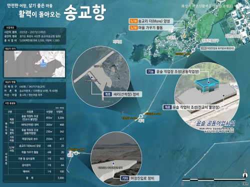 ½Ã´Â ¿À´Â 2027³â±îÁö 3³â °£ ±¹ºñ 35¾ï¿øÀ» Æ÷ÇÔÇÑ ÃÑ»ç¾÷ºñ 50¾ï ¿øÀ» ÅõÀÔÇØ, ¼Û±³Ç× ÀÏ¿ø¿¡ ¾î¾÷Ȱµ¿À» À§ÇÑ ¹°¾çÀå°ú °øµ¿ÀÛ¾÷ÀåÀ» ½Å±Ô Á¶¼ºÇÏ°í ¾îÀåÁøÀÔ·Î¿Í ¼±ÂøÀåÀ» º¸¼öÇÏ´Â µî Áö¿ª ÁÖ¹ÎÀÌ Àå±â°£ ¿°¿øÇØ ¿Â ¾îÇ× ³ëÈÄȯ°æ ¹× ¾ÈÀü½Ã¼³ Á¤ºñ¸¦ ÃßÁøÇÒ °èȹÀÌ´Ù.