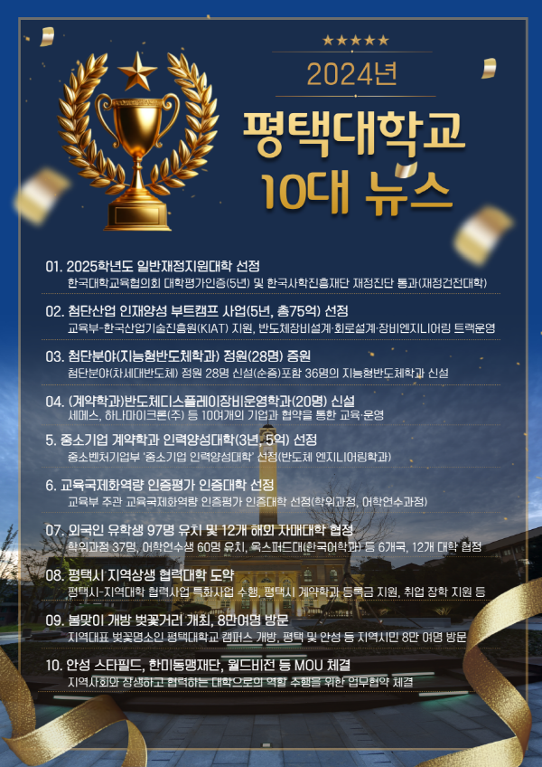 10´ë ´º½º´Â ÇÑ ÇØ µ¿¾È ´ëÇÐÀÇ ±³À°¡¤¿¬±¸¡¤»êÇС¤¿ÜºÎÆò°¡ µî Àü ºÎ¹®¿¡¼ ´ëÇÐ ¹ßÀü¿¡ ±â¿©µµ°¡ ³ôÀº ¿ì¼ö¼º°ú 10°¡Áö¸¦ ¼±Á¤ÇÑ °ÍÀÌ´Ù.