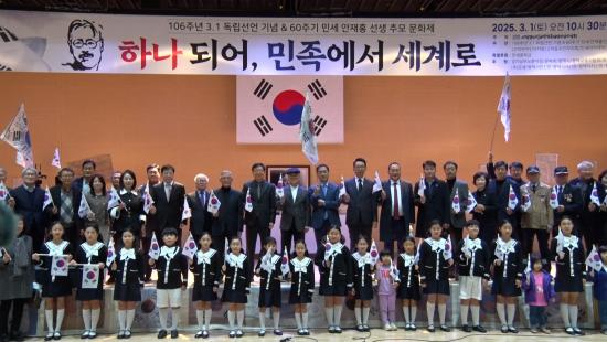 ÆòÅýð¡ Á¦ 106ÁÖ³â 3.1Àý ±â³ä½Ä°ú ¹ÎÁ·ÁöµµÀÚ ¾ÈÀçÈ« ¼±»ý ¼¼¼ 60ÁÖ±â Ã߸ð½ÄÀ» °ÅÇàÇß½À´Ï´Ù.]