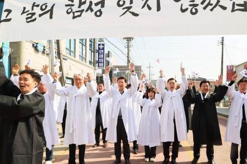 ÀÌ»óÀÏ ½ÃÀåÀº ¡°106³â Àü 3¿ù 21ÀÏ À̰÷ ¿ø»ïÀÇ ¼±¿µé²²¼´Â ºÐ¿¬È÷ ¶³ÃÄ ÀϾ '´ëÇÑ µ¶¸³ ¸¸¼¼'¸¦ ¿ÜÄ¡¸ç ¹ÎÁ·ÀÇ µ¶¸³ ÀÚÁÖ Á¤½ÅÀ» ¿ëÀÎ °÷°÷¿¡ ÀüÆÄÇϼ̴١±¸ç ¡°¿ø»ï¿¡¼ ½ÃÀÛµÈ ¸¸¼¼¿îµ¿ÀÌ µéºÒÀÌ µÇ¾î ¿ëÀÎ Àü¿ªÀ¸·Î ÆÛÁ³°í ´Ù¸¥ Áö¿ª¿¡µµ Å« ¿µÇâÀ» ¹ÌÃÆÀ¸¸ç µ¶¸³ ÀïÃëÀÇ ±â¹ÝÀÌ µÆ´Ù¡±°í °Á¶Çß´Ù.