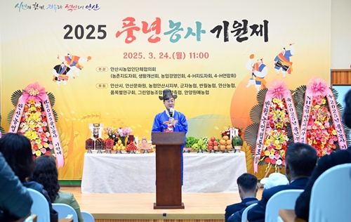 ¾È»ê½Ã(½ÃÀå À̹αÙ)´Â Áö³­ 24ÀÏ º»°ÝÀûÀÎ ³ó¹ø±â¸¦ ¸Â¾Æ ³ó¾÷±â¼ú¼¾ÅÍ ´ë°­´ç¿¡¼­ ³ó¾÷ÀεéÀÇ °á¼ÓÀ» ´ÙÁö±â À§ÇÑ ¡®2025 dz³â³ó»ç±â¿øÁ¦¡¯¸¦ °³ÃÖÇß´Ù°í 25ÀÏ ¹àÇû´Ù.