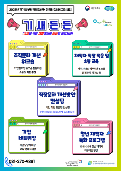 Âü¿©±â¾÷¿¡´Â °æ·Â´ÜÀý¿¹¹æÀ» À§ÇÑ ¡ãÁ÷Àå¹®È °³¼±¹æ¾È ÄÁ¼³ÆÃ ¡ãÀçÁ÷ÀÚ Á÷Àå ÀûÀÀ ¹× ¼ÒÅë ±³À° ¡ãÁ¶Á÷¹®È °³¼± ¿öÅ©¼ó ¡ãû³â ÀçÁ÷ÀÚ Æ¯È ÇÁ·Î±×·¥ µî ´Ù¾çÇÑ Áö¿øÀÌ Á¦°øµÈ´Ù.