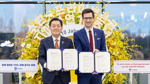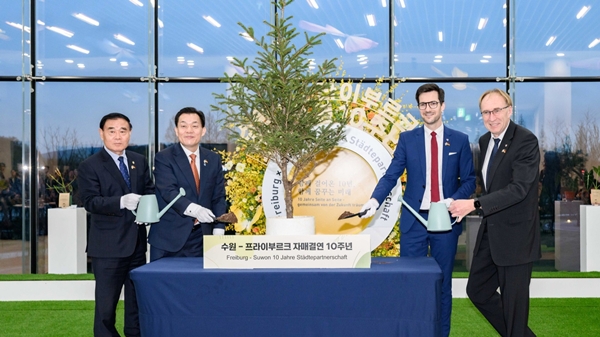 ÀÌÀçÁØ ¼ö¿ø½ÃÀåÀº ¡°10³â Àü ¼ö¿ø°ú ÇÁ¶óÀ̺θ£Å©´Â ¡®Áö¼Ó °¡´ÉÇÑ ¹Ì·¡ ȯ°æ µµ½Ã¡¯¶ó´Â °øµ¿ÀÇ ºñÀüÀ» ¹ÙÅÁÀ¸·Î Ä£±¸°¡ µÆ´Ù¡±¸ç ¡°¿ì¸®´Â ¿À·£ ¿ìÁ¤À» ¹ÙÅÁÀ¸·Î ´õ ÁÁÀº µµ½Ã¸¦ ¸¸µé¾î¿Ô´Ù¡±°í ¸»Çß´Ù.
