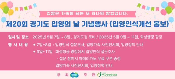 ÀÔ¾çÀÇ ³¯Àº 2006³â ¡®ÀÔ¾çÆ¯·Ê¹ý¡¯¿¡ µû¶ó Á¦Á¤µÈ ¹ýÁ¤±â³äÀÏ·Î ÇÑ(1)°¡Á¤¿¡ ÇÑ(1)¾ÆÀ̸¦ ÀÔ¾çÇÏÀÚ´Â ¶æÀ» ´ã°í ÀÖ´Ù. 5¿ù °¡Á¤ÀÇ ´ÞÀ» ¸Â¾Æ °æ±âµµ´Â ¸Å³â ÀԾ簡Á·À» À§ÇÑ ´Ùä·Î¿î Çà»ç¸¦ ¿¾î ÀÔ¾çÀÇ Àǹ̸¦ µÇ»õ±â°í ÀÖ´Ù.