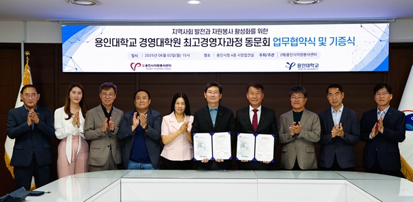 ¿ëÀνÃÀÚ¿øºÀ»ç¼¾ÅÍ¿Í ¿ëÀδëÇб³ °æ¿µ´ëÇпø ÃÖ°í°æ¿µÀÚ°úÁ¤ Ãѵ¿¹®È¸°¡ ÀÚ¿øºÀ»ç Ȱ¼ºÈ­¸¦ À§ÇÑ ¾÷¹«Çù¾àÀ» ü°áÇß´Ù