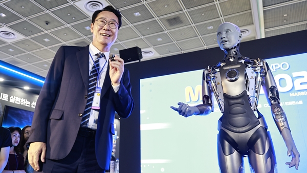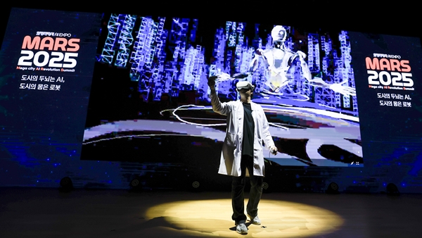 °³È¸½Ä Çà»ç´Â AI ±â¹Ý AR µå·ÎÀ× ÆÛÆ÷¸Õ½º·Î ¸·À» ¿¾ú°í ¼¼°è ÃÖ°í ¼öÁØÀÇ ÈÞ¸Ó³ëÀÌµå ·Îº¿ ¡®¾Æ¸ÞÄ«(Ameca)¡¯°¡ ¿µ»óÀ» ÅëÇØ ¹«´ë¿¡ µîÀåÇØ ¡¸MARS 2025¡¹ÀÇ ¼º´ëÇÑ °³¸·À» ¼±¾ðÇß´Ù. À̾î AI°¡ ÀÛ°îÇÑ ¼±À²¿¡ ±èÇü¼® ÀÛ°î°¡ÀÇ ÇÇ¾Æ³ë ¿¬ÁÖ°¡ ´õÇØÁö¸ç, Àΰ£°ú ÀΰøÁö´ÉÀÇ Çù¾÷°ø¿¬ÀÌ ÆîÃÄÁ³´Ù.