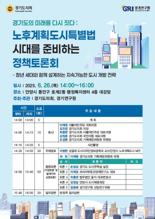 °æ±â¿¬±¸¿øÀº 26ÀÏ, ¡®°æ±âµµÀÇ ¹Ì·¡¸¦ ´Ù½Ã Áþ´Ù: ³ëÈİèȹµµ½ÃƯº°¹ý ½Ã´ë¸¦ ÁغñÇÏ´Â Á¤Ã¥Åä·Ðȸ¡¯¸¦ °³ÃÖÇÑ´Ù°í ¹àÇû´Ù.
