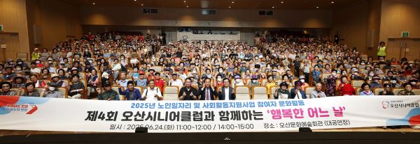 ¿À»ê½Ã(½ÃÀå À̱ÇÀç)´Â ³ëÀÎÀÏÀÚ¸®Áö¿ø±â°üÀÎ ¿À»ê½Ã´Ï¾îŬ·´(°üÀå ÀüÀϱ¤)°ú ÇÔ²² Áö³ 6¿ù 24ÀÏ, ¿À»ê¹®È¿¹¼úȸ°ü ´ë°ø¿¬Àå¿¡¼ ¡®2025³â ³ëÀÎ ÀÏÀÚ¸® ¹× »çȸȰµ¿ Áö¿ø»ç¾÷¡¯ Âü¿© ¾î¸£½Å 1,300¿© ¸íÀ» ´ë»óÀ¸·Î ¹®È Ȱµ¿ ÇÁ·Î±×·¥À» ½Ç½ÃÇß´Ù°í ¹àÇû´Ù.