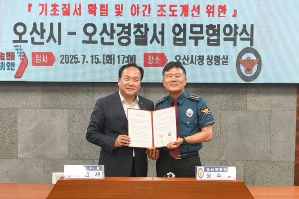 ¿À»ê½Ã¿Í ¿À»ê°æÂû¼­(¼­Àå À±ÁÖö)´Â Áö³­ 15ÀÏ ½Ãû »óȲ½Ç¿¡¼­ ¡®¾ß°£ Á¶µµ °³¼± ¾÷¹«Çù¾à¡¯À» ü°áÇϰí, ¾îµÎ¿î °ñ¸ñ±æ°ú ¹üÁË Ãë¾àÁö¿ªÀÇ Á¶µµ¸¦ ÁýÁß °³¼±ÇØ ¹üÁ˸¦ ¿¹¹æÇÏ°í ½Ã¹Î ºÒ¾ÈÀ» ÇØ¼ÒÇϱâ·Î Çß´Ù.