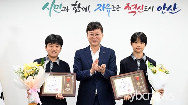 ¾È»ê½Ã(½ÃÀå À̹αÙ)´Â Áö³ 18ÀÏ ¹«´õÀ§ ¼Ó ¾î¸£½ÅÀ» µµ¿Í ¼±ÇÑ ¿µÇâ·ÂÀ» ¼±»çÇÑ ¼ºÈ£ÁßÇб³ ¾ç½Ã¿Â(2Çгâ), À¯È£Çö(2Çгâ) ÇлýÀ» ¾È»ê½ÃûÀ¸·Î ÃÊ´ëÇØ ǥâÀåÀ» ¼ö¿©Çß´Ù°í 21ÀÏ ¹àÇû´Ù.