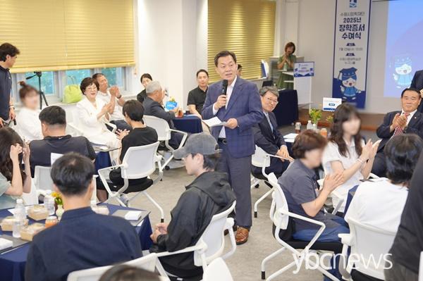 ÀÌÀçÁØ ¼ö¿ø½ÃÀåÀº ¡°ÇѸ¶À½À¸·Î µû¶æÇÑ ³ª´®À» ½ÇÃµÇØÁֽбâºÎÀÚ ¿©·¯ºÐ²² Áø½ÉÀ¸·Î °¨»çµå¸°´Ù¡±¸ç ¡°¿©·¯ºÐÀÇ Áö¿ª»çȸ¿¡ ´ëÇÑ »ç¶ûÀÌ ¿À´Ã ÀÌ ÀÚ¸®¸¦ ÅëÇØ Àß ÀüÇØÁ® ´õ¿í ¶æ±í´Ù¡±°í ¸»Çß´Ù.