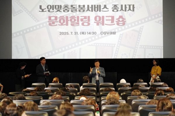 ½Å»óÁø ¼º³²½ÃÀåÀÌ 31ÀÏ ¿ÀÈÄ ¾ßžCGV¿¡¼ ¿¸° ¡®³ëÀθÂÃãµ¹º½¼ºñ½º Á¾»çÀÚ ¹®ÈÈú¸µ ¿öÅ©¼ó¡¯¿¡ Âü¼®ÇØ ÇöÀå Á¾»çÀÚµéÀ» °Ý·ÁÇß´Ù.