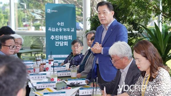 ÀÌÀçÁØ ¼ö¿ø½ÃÀåÀº ¡°±¤º¹ 80ÁÖ³âÀ» ¸Â¾Æ ¼ö¿ø½Ã¹ÎÀÌ ÁÖÀΰøÀÎ ÇÁ·Î±×·¥µéÀÌ °÷°÷¿¡¼ À̾îÁö°í ÀÖ´Ù¡±¸ç ¡°¼ö¸¹Àº µ¶¸³¿îµ¿°¡µéÀÇ Á¤½ÅÀÌ ±êµç ¼ö¿ø¿¡¼ ±×³¯ÀÇ ÇÔ¼ºÀ» µÇ»ì¸®°í ³»ÀÏÀÇ Èñ¸ÁÀ» ÇÔ²² ³ë·¡ÇÏ±æ ¹Ù¶õ´Ù¡±°í ¸»Çß´Ù.