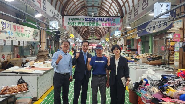 Á¤Àå¼± ÆòÅýÃÀåÀº Áö³­ 26ÀϺÎÅÍ ¸íÀýÀÎ Ãß¼®À» ¾ÕµÎ°í ¹Î»ý °æÁ¦¸¦ »ìÇÇ°í »óÀεéÀ» °Ý·ÁÇϱâ À§ÇØ °ü³» ÀüÅë½ÃÀåÀ» ¹æ¹® ÁßÀÌ´Ù.