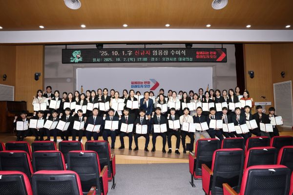 ¿À»ê½Ã(½ÃÀå À̱ÇÀç)´Â Áö³­ 10¿ù 2ÀÏ ¿À»ê½Ãû ´ëȸÀǽǿ¡¼­ 2025³â ½Å±Ô ÀÓ¿ë °øÁ÷ÀÚ 52¸íÀ» ´ë»óÀ¸·Î ÀÓ¿ëÀå ¼ö¿©½ÄÀ» °³ÃÖÇß´Ù°í ¹àÇû´Ù.