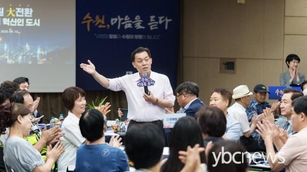 ÀÌÀçÁØ ¼ö¿ø½ÃÀåÀÌ ¸ðµç µ¿(44°³)À» ¹æ¹®ÇØ ½Ã¹ÎµéÀ» ¸¸³ª ½ÃÁ¤ °èȹÀ» ¼³¸íÇϰí, ´ëÈ­¸¦ ³ª´©´Â ¡®2025 »õºû¸¸³²- ¼ö¿ø, ¸¶À½À» µè´Ù¡¯°¡ ½Ã¹ÎµéÀÇ È£ÀÀÀ» ¾ò°í ÀÖ´Ù. 9¿ù 8ÀÏ ¸Å±³µ¿¿¡¼­ ½ÃÀÛÇÑ 2025 »õºû¸¸³²Àº 10¿ù 24ÀϱîÁö 23°³ µ¿¿¡¼­ ¿­¸®¸ç ¹ÝȯÁ¡À» µ¹¾Ò´Ù.
