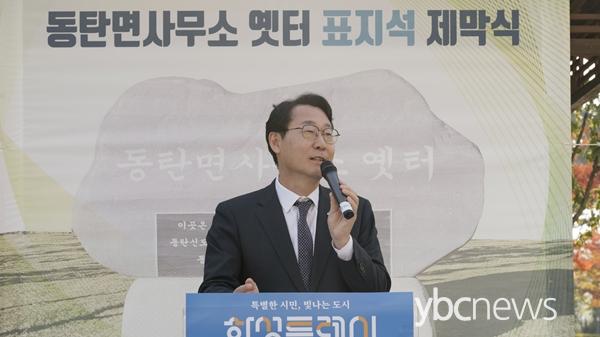 Á¤¸í±Ù È­¼ºÆ¯·Ê½ÃÀåÀº Ãà»ç¿¡¼­ ¡°ÀÌ ÀÚ¸®´Â 100¿© ³âÀÌ ³Ñ´Â ¿ª»ç¸¦ Áö´Ñ µ¿Åº¸éÀÇ ÇàÁ¤±â°üÀÌ ÀÖ¾ú´ø °÷À¸·Î ¿À´Ã³¯ ´«ºÎ½Å ¹ßÀüÀ» ÀÌ·é µ¿ÅºÀÇ »Ñ¸®ÀÌÀÚ Á¤Ã¼¼ºÀÌ ±êµç Àå¼Ò¡±¶ó¸ç ¡°°ú°ÅÀÇ ÅÍÀü À§¿¡¼­ »õ·Î¿î ¹Ì·¡°¡ À̾îÁö´Â ÀÌ ÀÚ¸®°¡ ½Ã¹Îµé¿¡°Ô ÀÚ±à½ÉÀ¸·Î ±â¾ïµÇ±æ ¹Ù¶õ´Ù¡±°í ¸»Çß´Ù.