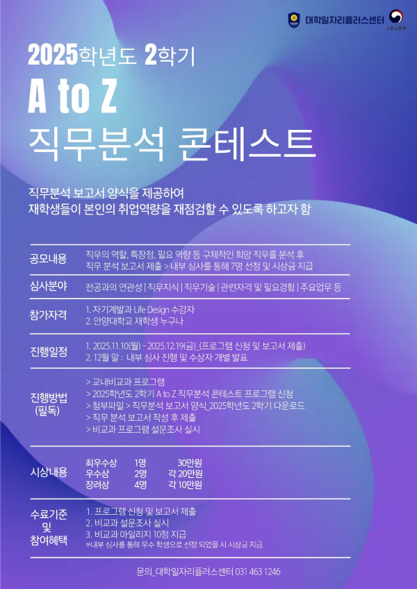 ¾È¾ç´ëÇб³ ´ëÇÐÀÏÀÚ¸®Ç÷¯½º¼¾ÅÍ, ¡®A to Z Á÷¹« ºÐ¼®ÄÜÅ×½ºÆ®¡¯ °³ÃÖ