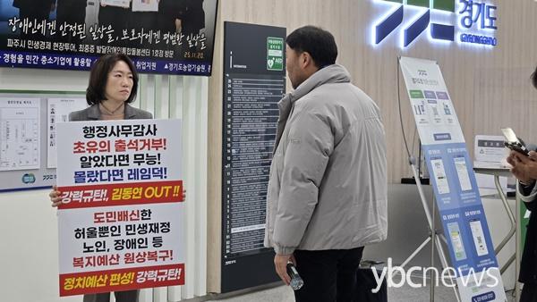 ÀÇ¿øµéÀº À̳¯ºÎÅÍ µµÃ» ÃâÀÔ¹® ¾Õ¿¡¼ 1ÀÎ ¸±·¹ÀÌ ½ÃÀ§¸¦ À̾¸ç ±èµ¿¿¬ Áö»ç¿¡°Ô Á÷Á¢ »ç°ú¿Í Ã¥ÀÓÀÚ ¹®Ã¥À» ¿ä±¸Çϰí ÀÖ´Ù.