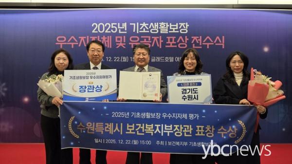 ¼ö¿øÆ¯·Ê½Ã(½ÃÀå ÀÌÀçÁØ)°¡ º¸°Çº¹ÁöºÎ ÁÖ°ü ¡®2025³â ±âÃÊ»ýȰº¸À塤±ä±ÞÁö¿ø »ç¾÷¡¯ Æò°¡¿¡¼ ¿ì¼ö ÁöÀÚü·Î ¼±Á¤µÅ º¸°Çº¹ÁöºÎ Àå°ü ǥâÀ» ¹Þ¾Ò´Ù. ½Ã»ó½ÄÀº 22ÀÏ ¼¿ï ±Û·¡µåÈ£ÅÚ¿¡¼ ¿·È´Ù.