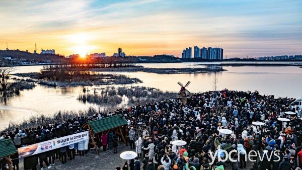 À̳¯ ½Ã¹ÎµéÀº ¿Õ¼ÛÈ£¼ö¿¡¼ ¶°¿À¸¥ ÇØ¸¦ ¹Ù¶óº¸¸ç °¡Á·¡¤Ä£Áöµé°ú ÇÔ²² »õÇØ ¼Ò¿øÀ» ºô°í, ºÓÀº ¸»ÀÇ ÇØ ±â¿îÀ» ¹Þ´Â ¶æ±íÀº ½Ã°£À» º¸³Â´Ù.