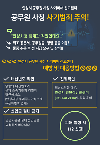 ¾È¼º½Ã, ¡®°ø¹«¿ø »çĪ »ç±âÇÇÇØ ½Å°í¼¾ÅÍ¡¯ ¿î¿µ¡¦ ¼Ò»ó°øÀÎ ÇÇÇØ ¿¹¹æ ÃÑ·Â