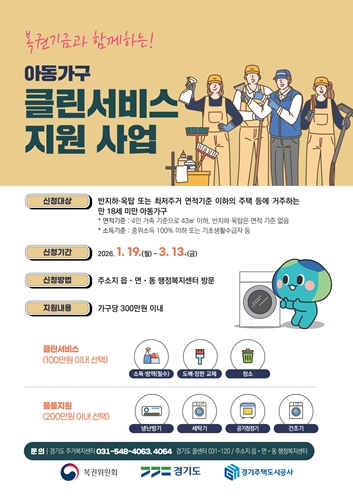 Áö¿ø ³»¿ëÀº Å©°Ô µÎ ºÐ¾ß·Î ±¸¼ºµÈ´Ù. Ŭ¸° ¼ºñ½º ºÐ¾ß´Â ¼Òµ¶¡¤¹æ¿ª, µµ¹è¡¤ÀåÆÇ ±³Ã¼, û¼Ò(¼ö³³) Áß 2°¡Áö¸¦ ¼±ÅÃÇÒ ¼ö ÀÖ´Ù. ´ÙÀ½À¸·Î ¹°Ç° Áö¿ø ºÐ¾ß´Â ³Ã¡¤³¹æ±â, ¼¼Å¹±â, °ø±âûÁ¤±â, °ÇÁ¶±â Áß 2°¡Áö¸¦ ¼±ÅÃÇÒ ¼ö ÀÖ´Ù. ÃÖÁ¾ Áö¿øÀº ½Åû °¡±¸¸¦ ´ë»óÀ¸·Î ÁøÇàµÇ´Â »ó´ã ¹× ¼ö¿äÁ¶»ç, ÁÖ°Å»óÅ ȮÀÎ °á°ú µîÀ» ¹ÙÅÁÀ¸·Î °¡±¸º° Çʿ信 ¸Â°Ô °áÁ¤µÈ´Ù.