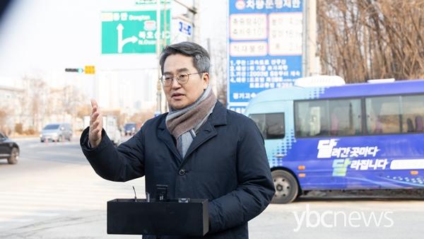 ±è Áö»ç´Â ÇöÀå¿¡¼ ¡°À̰÷Àº ¿À»ê½Ã¿¡¼µµ °¡Àå ±³Åë üÁõÀ¸·Î À¯¸íÇÑ °÷¡±À̶ó¸ç ¡°¿À»ê½Ã¿Í ÇÔ²² ºÏ¿À»êIC 2Â÷¼± µµ·Î¸¦ 3Â÷¼± µµ·Î·Î ³ÐÇô ±³Åë üÁõÀ» ÇØ¼ÒÇϰڴÙ. ºü¸¥ ½Ã°£ ³»¿¡ È®ÀåÇÒ ¼ö ÀÖµµ·Ï ÃÖ¼±À» ´ÙÇϰڴ١±°í ¸»Çß´Ù.