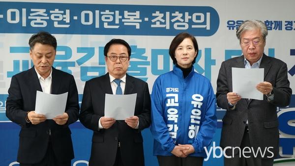 À̼º´ë, ÀÌÀç»ï, ÀÌÁßÇö, ÀÌÇѺ¹, ÃÖâÀÇ µî Àü °æ±âµµ±³À°°¨ ¿¹ºñÈĺ¸ ´Ù¼¸ ¸íÀº 27ÀÏ ¡°À§±â¿¡ ºüÁø °æ±â±³À°À» ´Ù½Ã ¼¼¿ï À¯ÀÏÇÑ ÀûÀÓÀÚ´Â À¯ÀºÇý»Ó¡±À̶ó¸ç À¯ÀºÇý ¿¹ºñÈĺ¸ ÁöÁö¸¦ ¼±¾ðÇÏ°í ³ª¼¹´Ù.