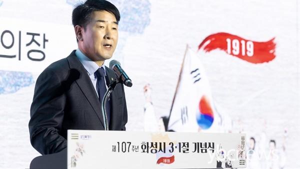 ¹èÁ¤¼ö ÀÇÀåÀº ±â³ä»ç¸¦ ÅëÇØ ¡°3¡¤1¿îµ¿Àº ½º½º·Î¸¦ ¿ª»çÀÇ ÁÖÀÎÀ¸·Î ¼¼¿î ½Ã¹ÎÀÇ ¼±¾ð¡±À̶ó¸ç ¡°±× Á¤½ÅÀ» ±â¾ïÇÏ´Â µ¥¼ ¸ØÃßÁö ¾Ê°í ´ÙÀ½ ¼¼´ë°¡ Á¦´ë·Î ¹è¿ì°í ÀÕµµ·Ï °è½ÂÇØ¾ß ÇÑ´Ù¡±°í °Á¶Çß´Ù.