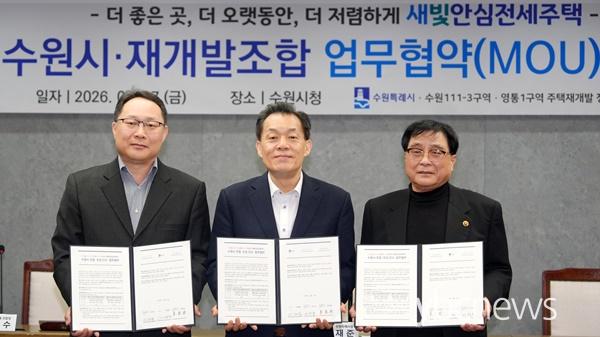 ¼ö¿ø½Ã¿Í 111-3±¸¿ª(¿µÈ­µ¿)¡¤¿µÅë1±¸¿ª(¸Åź1µ¿) Àç°³¹ß Á¶ÇÕÀº 27ÀÏ ½Ãû »óȲ½Ç¿¡¼­ ¡®»õºû¾È½ÉÀü¼¼ÁÖÅà Á¶¼º¡¤Àμö ¾÷¹«Çù¾à¡¯À» ü°áÇß´Ù.
