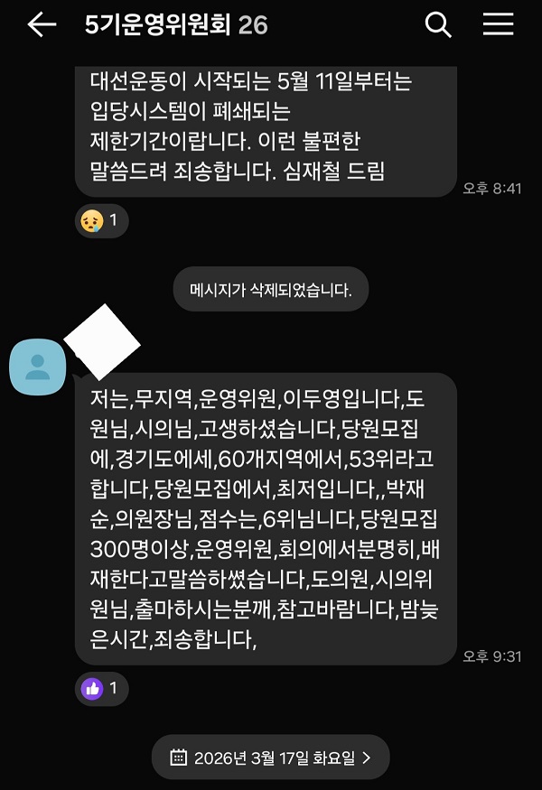 ±âÁ¸ÀÇ ´çÇùÀ§¿øÀåÀÌ À̾߱â ÇÏ¿´´ø °øÃµ±âÁØ(´ç¿ø°¡ÀÔ300¸í)Àº ¹«³ÊÁ³À¸¸ç, ¡°´çÀ» À§ÇØ Çå½ÅÇÑ À̵éÀº µé·¯¸® ¼¼¿ì°í, À§¿øÀå°úÀÇ Ä£ºÐ¸¸À¸·Î °øÃµÀåÀ» Áã¿©ÁÖ´Â °ÍÀº ´ç¿øÀ» ±â¸¸ÇÏ´Â '»çÀû °øÃµ ³ó´Ü'ÀÌ´Ù.¡±